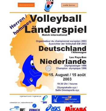 Der Luxemburgische Volleyball-Verband FLVB ist am 15. August 2003 Ausrichter des Volleyball-Länderspiels Deutschland-Niederlande. Austragungsort ist die 'Coque', eine nagelneue Sporthalle mit Olympia-Schwimbad und Konferenzzentrum.